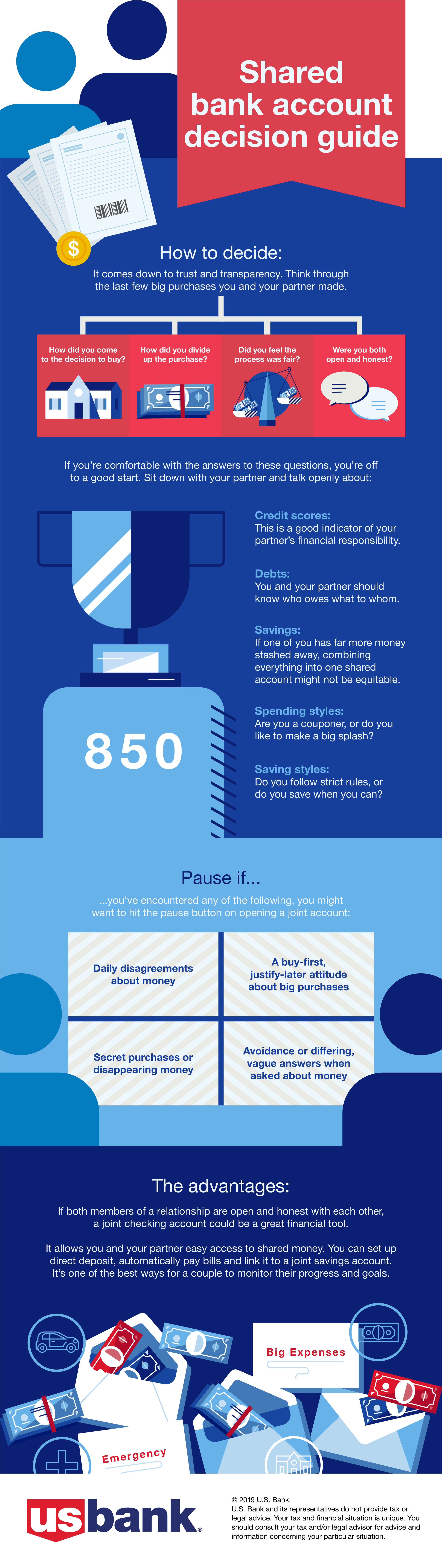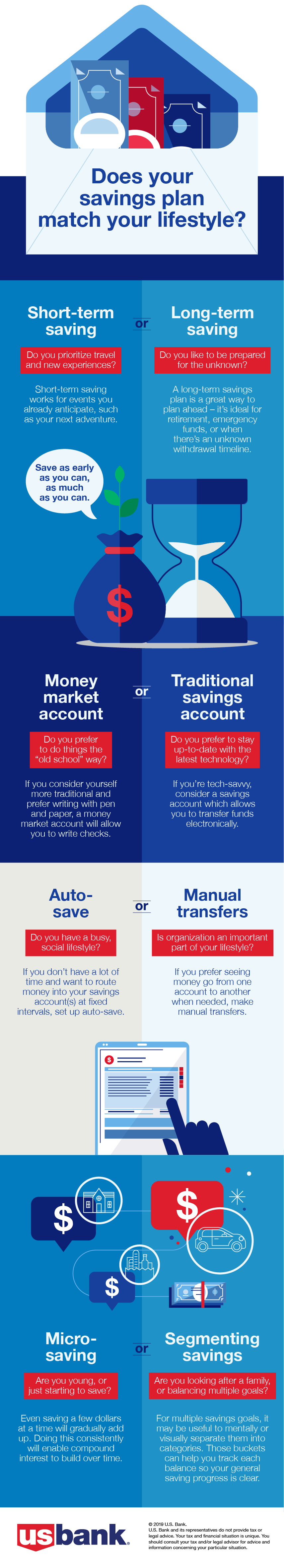 Design and illustrate infographics to extend reader interaction within US Bank’s financial literacy articles. Make sure the information is bite-sized, digestible, and easily incorporated in the average person’s day-to-day life. Follow US Bank’s general brand guidelines for tone and visuals.